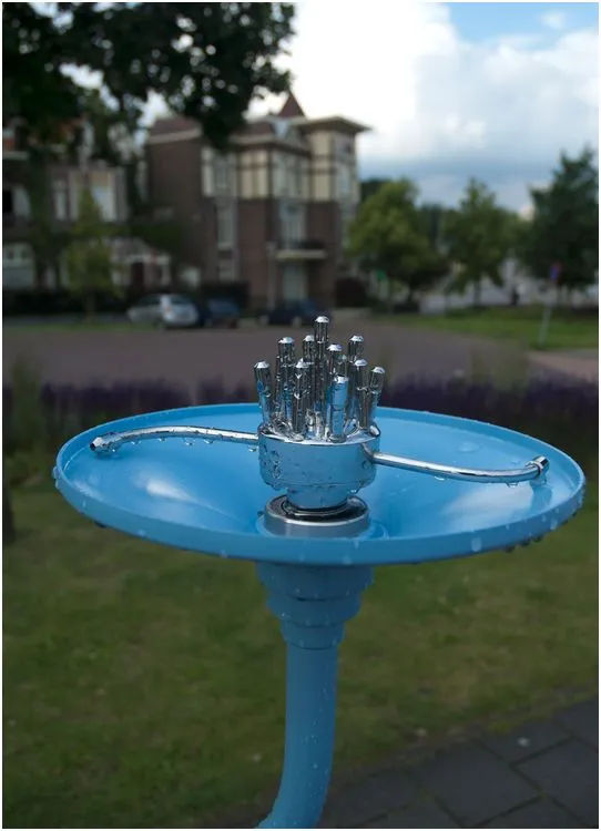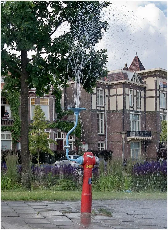 共同受益,就像一个共同的淋浴?这在这个被改造的消防栓下当然是可能的,它 conjures 出一个社区在夏季炎热中欢庆的画面,周围的邻里却在燃烧: