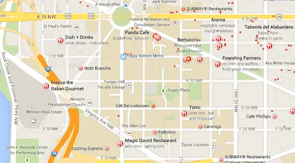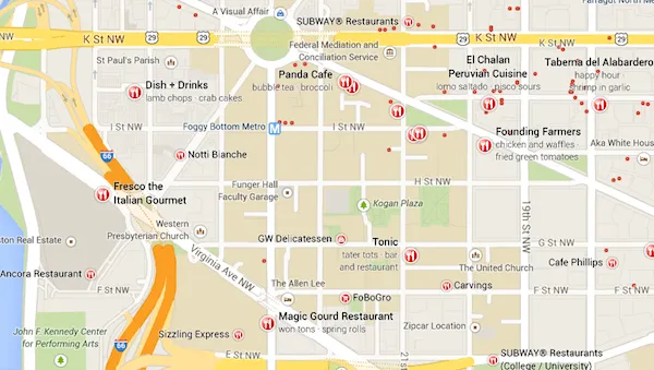 彭博社城市实验室贝尔法斯特的中央车站为北爱尔兰的公共交通开创了新时代芝加哥应考虑所有解决预算危机的方案,普利兹克说消除美国道路死亡的月球计划AOC提议300亿美元的社会住房管理局作为开始,我们在办公室进行了一个小实验。以下是我在西北华盛顿的 大西洋城市 办公室附近搜索“餐厅”的结果(我已标记了一些结果):