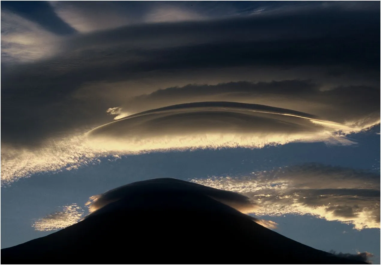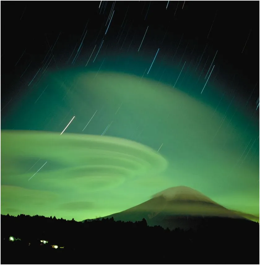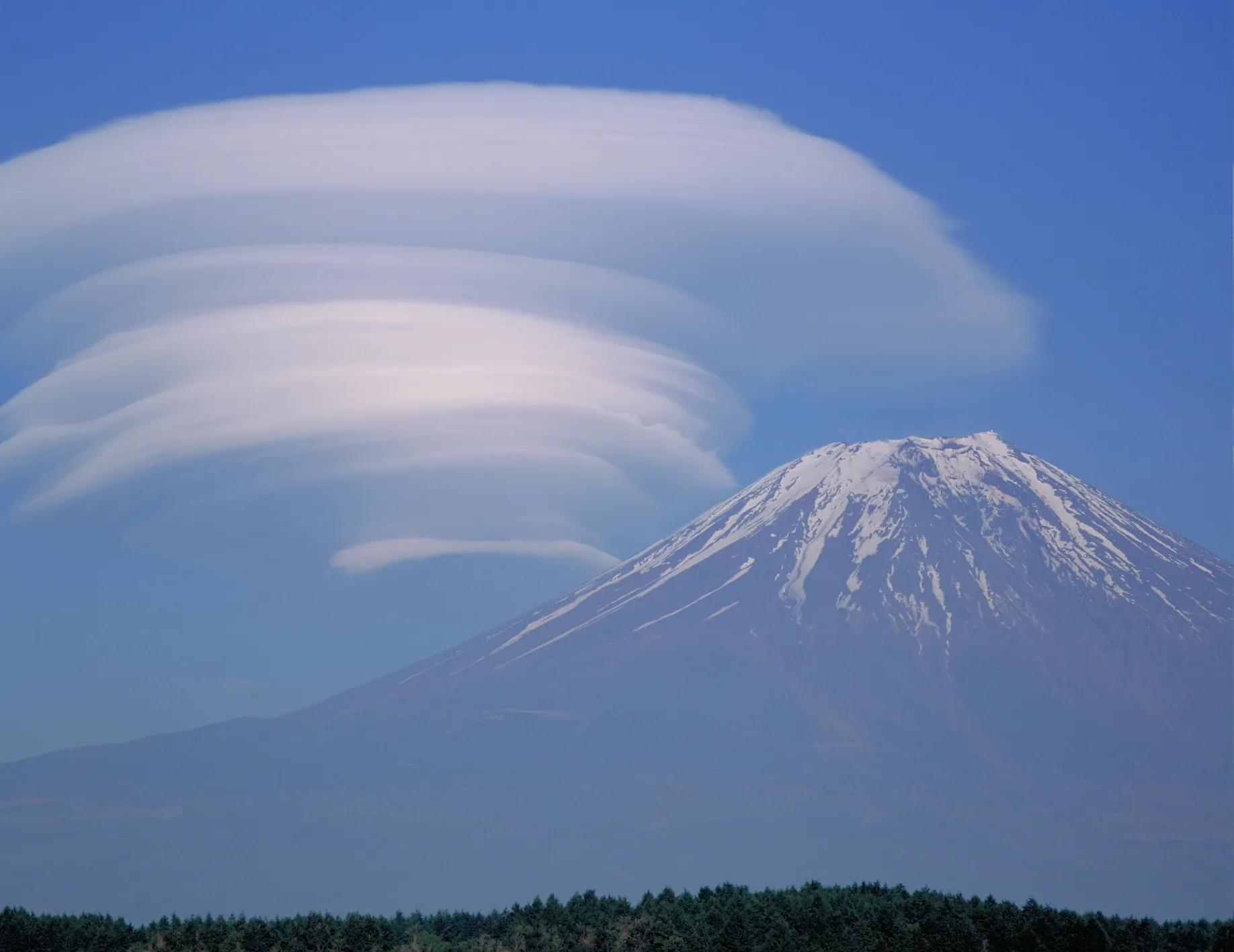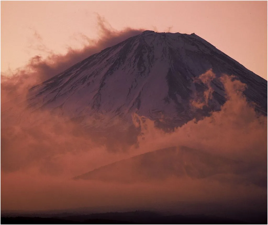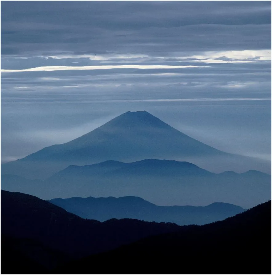 岛野浩一的作品恰好进入了富士山灵感艺术的顶级行列。自去年从东京农业大学退休以来,这位 摄影爱好者的六十多岁老者创作了令人震撼的火山肖像,最后一次喷发是在1707年,可能 还没有结束。虽然其他艺术家专注于山的巨大体积或优美对称,岛野的作品却有着独特的气象风味——他对附着在山顶的巨大云团、笼罩山坡的火星尘云以及在山脚下聚集的浓雾产生了浓厚的兴趣,使得山峰看起来像一只巨大的鲨鱼鳍切割着海洋。