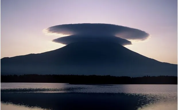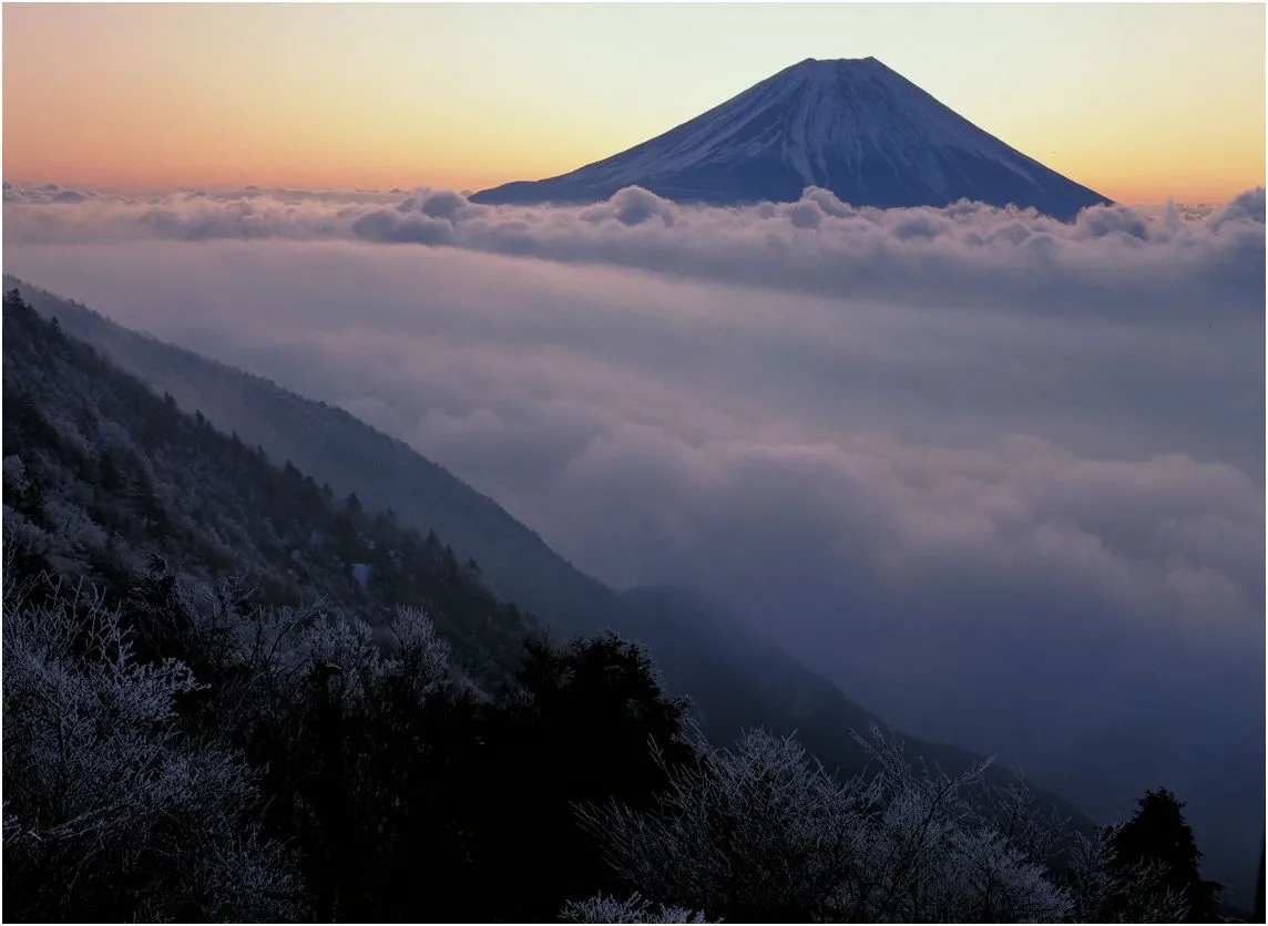 岛野浩一的作品恰好进入了富士山灵感艺术的顶级行列。自去年从东京农业大学退休以来,这位 摄影爱好者的六十多岁老者创作了令人震撼的火山肖像,最后一次喷发是在1707年,可能 还没有结束。虽然其他艺术家专注于山的巨大体积或优美对称,岛野的作品却有着独特的气象风味——他对附着在山顶的巨大云团、笼罩山坡的火星尘云以及在山脚下聚集的浓雾产生了浓厚的兴趣,使得山峰看起来像一只巨大的鲨鱼鳍切割着海洋。