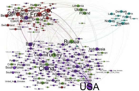 最近对姐妹城市协议的研究(通过 塞缪尔·阿贝斯曼在 Wired)发现地理距离对这个网络的性质只有“微不足道的影响” [PDF]. 这与个人关系非常不同,后者的接近性增加了建立联系的可能性。研究人员甚至质疑姐妹城市是否代表了“人类沟通中距离消亡的第一个证据(尽管是以其制度形式)”。