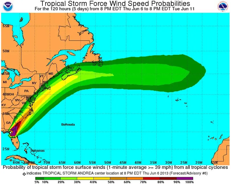 顶部图像:安德烈在2013年6月6日从太空中看到的,感谢 NOAA-NASA GOES项目
