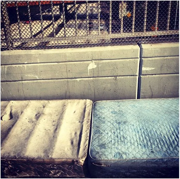 湾区床垫的奇怪过剩已成为当地摄影师 阿曼达·杜尔宾 的一种痴迷,自2009年以来,她可能拍摄了“几百个”床垫。杜尔宾最初将她的床垫项目作为一个秘密项目,用老式一次性相机和佳能 AE-1 追踪她那神秘污渍的猎物。“没有人知道我在拍床垫,”她说。“这有点奇怪和个人,向我的摄影同学甚至我的朋友解释我为什么这样做似乎太繁琐了,所以我只是为自己拍。”