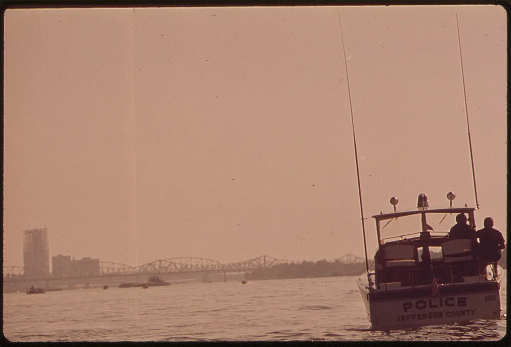 “州和县警察巡逻俄亥俄河,1972年6月”
