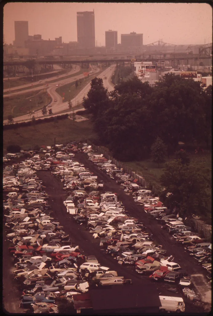 “从市中心高楼可以看到的汽车废料场,1972年9月”