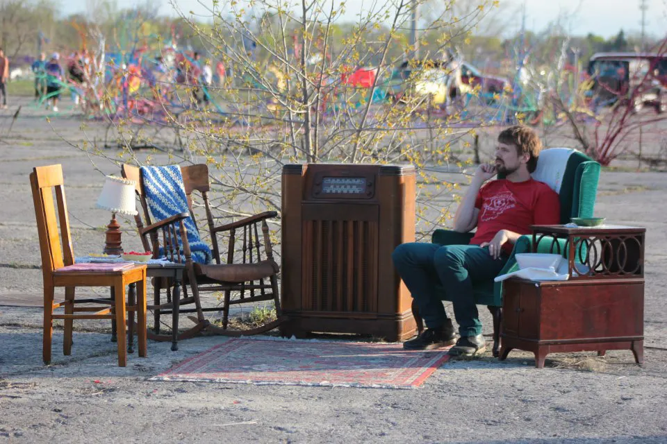 *杰罗姆·周:*在五月,我们组织了“自由城市”,这是在一个名为“雪佛兰洞”的前雪佛兰制造厂举办的为期三天的公共艺术节。我们希望将多样化的、批判性的群众和活动带回这个地方,并展示这个地方可以被重新利用的所有方式。我们有观鸟游览、福音合唱团表演、舞会和一个正在运作的桑拿。人们在问我们什么时候会再次举办这个节日。