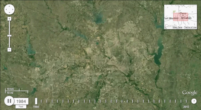 看,这是1984年至2012年的达拉斯/沃斯堡地区。发展的巨大程度几乎令人难以置信:
