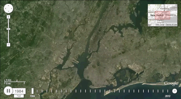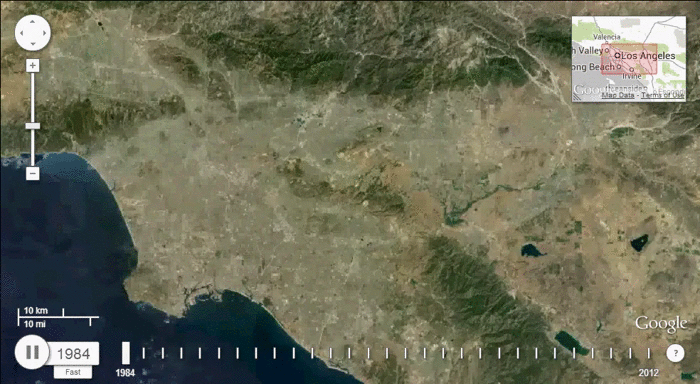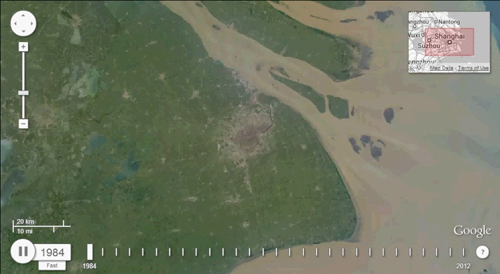 这些GIF是由年轻的德克萨斯建筑师塞缪尔·阿斯顿·威廉姆斯从谷歌的“Landsat年度时间推移”工具录制的。威廉姆斯希望为最近由谷歌、NASA、TIME等合作制作的惊人系列贡献一些新东西,展示了三十年来的 人类与自然景观的干预。