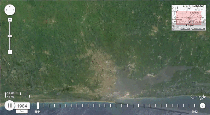 尼日利亚的拉各斯显示出巨大的增长和随之而来的森林砍伐: