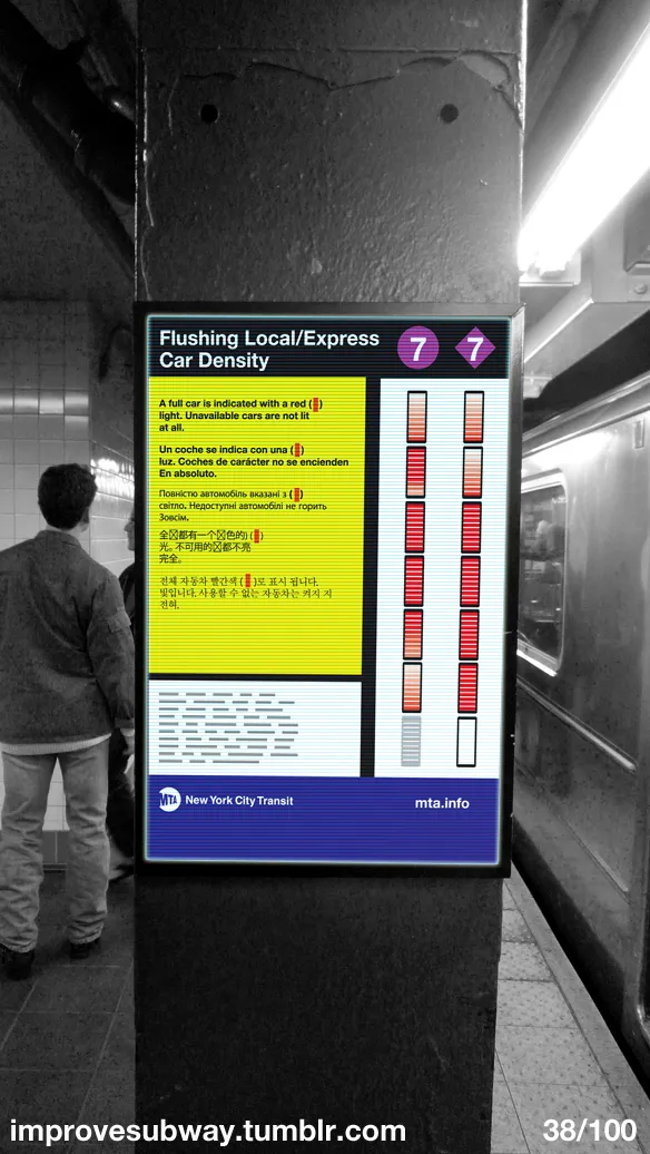 我觉得,车站计时器/LED显示屏在一些车站是对系统的一个很好的补充。作为一种文化,我们与设备保持着持续的连接,这意味着我们可能会错过火车的公告。这些显示屏帮助传递重要信息,我觉得它们应该在其他可以受益的车站战略性地设置,比如连接E、M和G线与7号线的Court Square Junction。