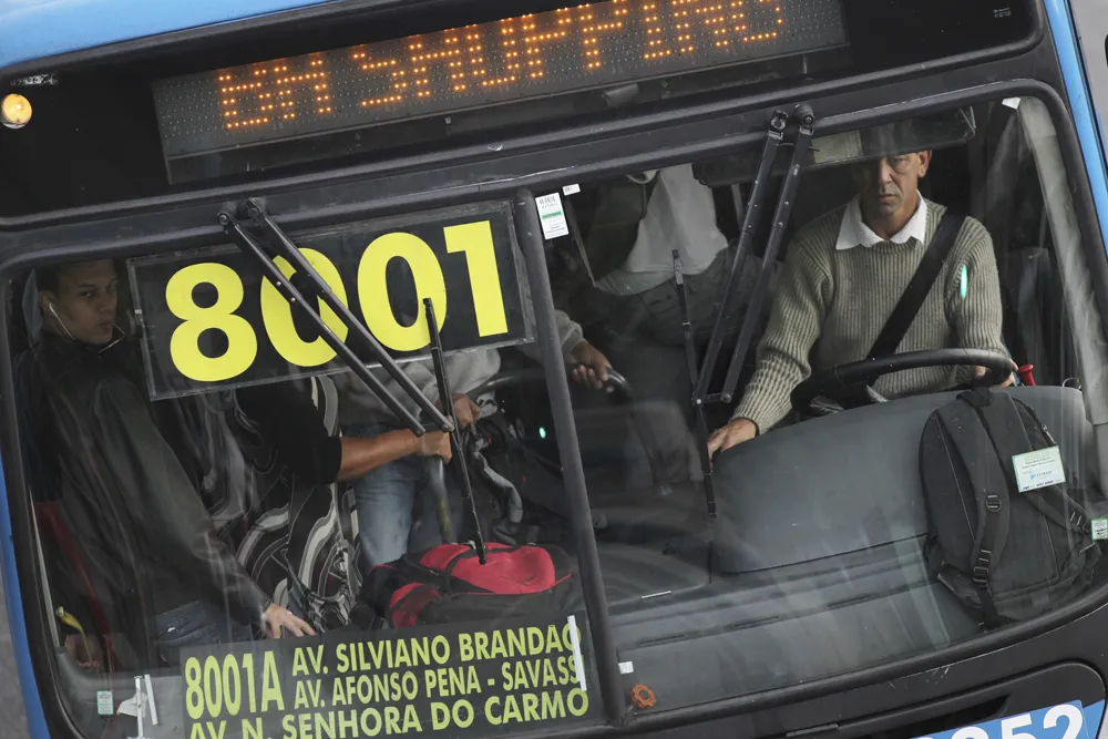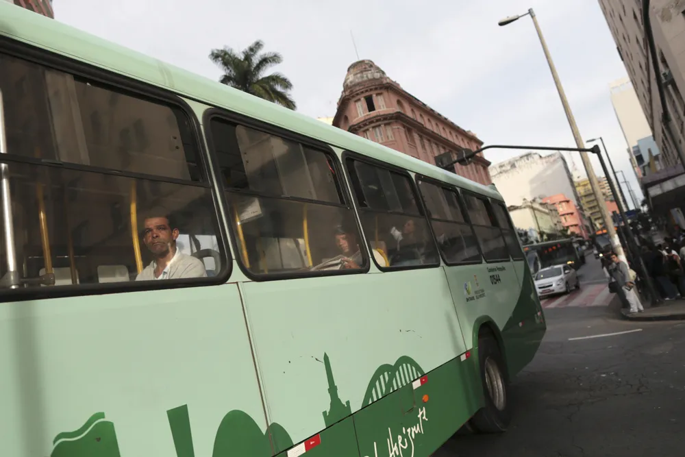 人们在2013年6月25日的贝洛哈里藏特市中心街道上乘坐公共汽车。巴西的示威者本周聚集,继续进行日益增长的抗议活动,表达对公共服务差的广泛愤怒,主要是医疗、教育和交通。路透社/乌斯雷·马塞利诺