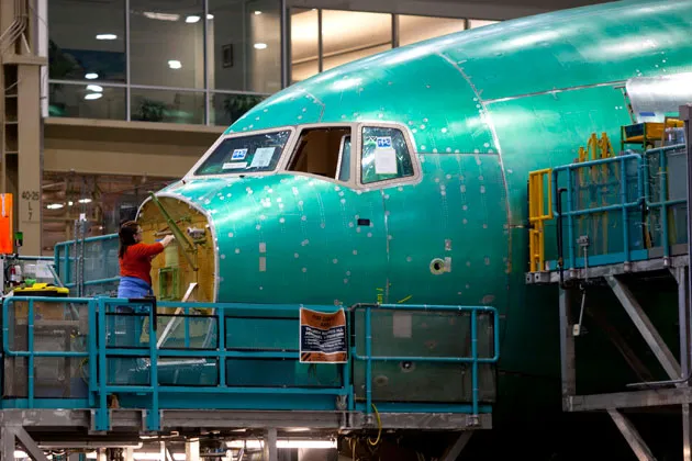 一名员工在华盛顿州埃弗雷特的波音公司工厂里,正在对一架波音777飞机的机头部分进行作业。摄影:Mike Kane/Bloomberg美国制造业活动在上个月略有增长,6月份供应管理协会采购经理人指数(PMI)小幅上升至50.9。(PMI被视为制造业活动的最佳指标,数值高于50表示增长。)2013年前六个月中,制造业活动已有五个月呈现扩张态势。