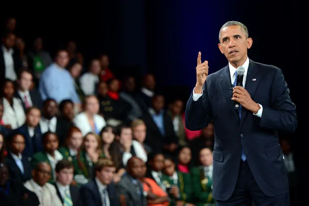 奥巴马在约翰内斯堡索韦托大学发表演讲摄影:Denvor de Wee/City Press/Gallo Images/Getty Images上周末在约翰内斯堡的一场市政厅式会议上,奥巴马总统回答了一个关于美国将如何帮助非洲经济体减少对外国援助依赖并“掌握自身市场”的问题。以下是他的回应部分内容: