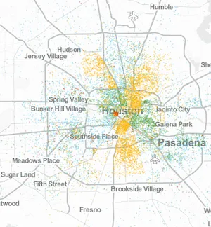 休斯顿,1980年(左)和2010年(右):