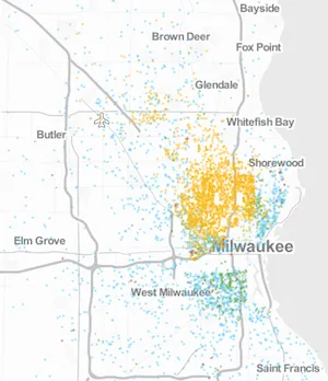 密尔沃基,1980年(左)和2010年(右):