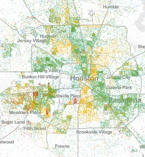 休斯顿,1980年(左)和2010年(右):