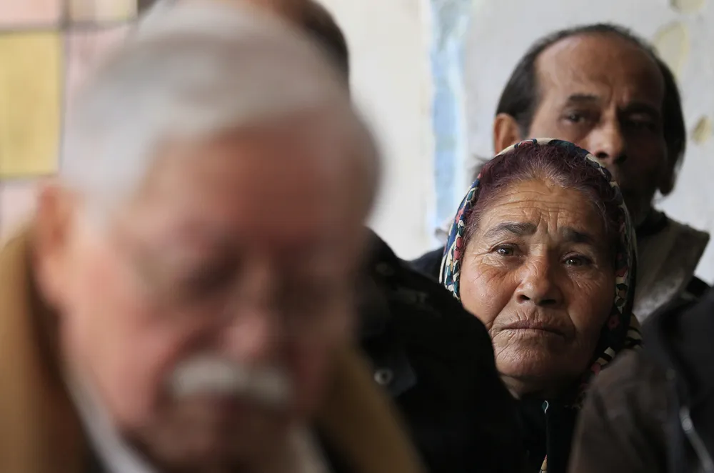 居民们坐在Gesu的庭院里。2013年4月18日。路透社/Yves Herman