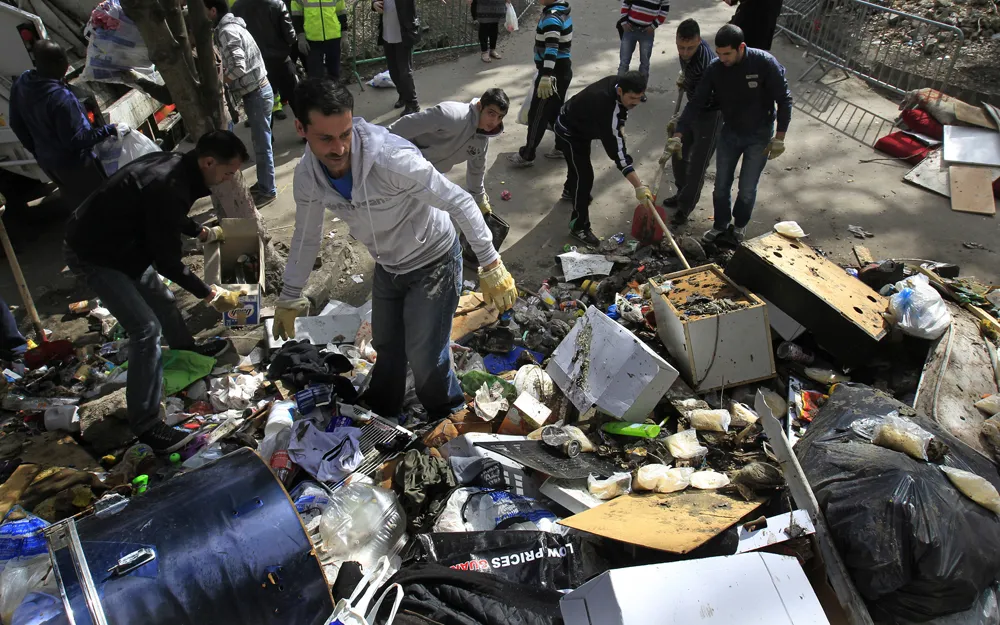 居民从Gesu的院子里清理垃圾。2013年4月18日。路透社/伊夫·赫尔曼