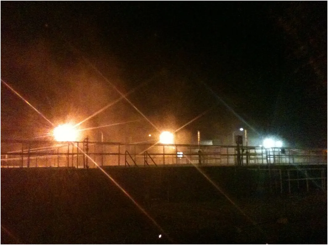 这是温斯顿分享的照片,展示了影响小说的阴森工业建筑,从这些笼罩在雾中的曝气池开始: