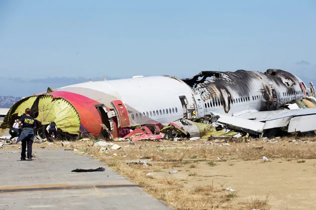 美国国家运输安全委员会调查员正在检查7月7日旧金山坠机事故中韩亚航空214航班的后部残骸图片来源:NTSB/盖蒂图片社看到韩亚航空777客机7月6日在旧金山迫降后焦黑变形的残骸,很难相信这场导致两名乘客遇难的事故没有造成更大伤亡。材料科学与机组培训的巨大进步——以及过往空难的教训——已显著提升了航空事故中的生还概率。