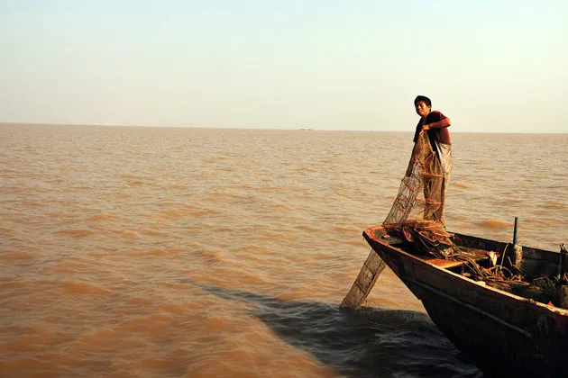 珠江口渔民新村的一位渔民正在拖网捕鱼摄影:中国图片库/盖蒂图像中国南部贺江下游约3万居民未来三周将面临常规供水中断,此前政府于周六对受污染河流展开了调查。
