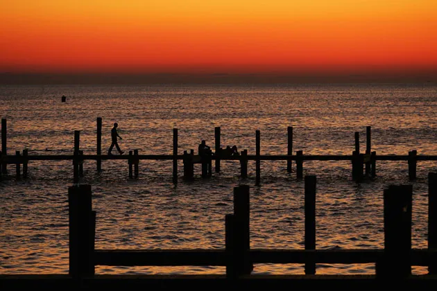 日出时分,一人沿火岛海洋滩的码头漫步摄影:Ezra Shaw/Getty Images威瑞森公司计划永久终止纽约火岛数百居民固话服务的举措,或许预示着飓风将如何加速美国电话系统的瓦解。