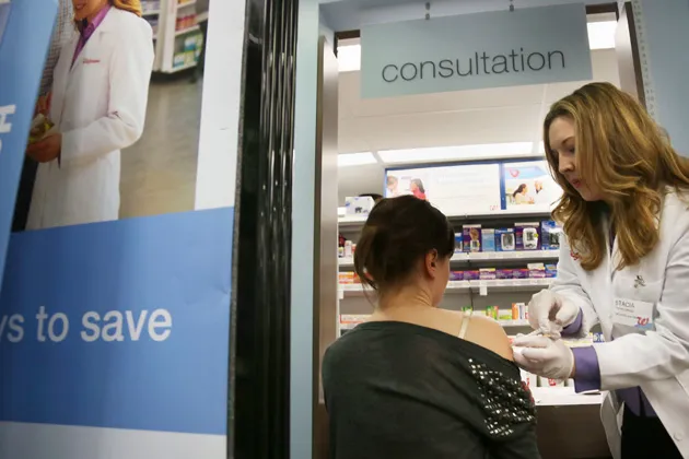 纽约一家沃尔格林药店内,药剂师正在为顾客接种流感疫苗摄影:Bebeto Matthews/美联社当白宫竭力推动奥巴马医改法案在十月前全面落地实施,并抵御反对者的废除企图时,两大医疗保健公司已表态支持该法案的推行。沃尔格林与蓝十字蓝盾协会——这两家都将因医保覆盖人群扩大而获益的机构——联合推出了一个专题网站,专门解读"新医保法案如何影响您的生活"。据彭博社报道,沃尔格林还将在其8000家门店内向消费者提供相关咨询服务。