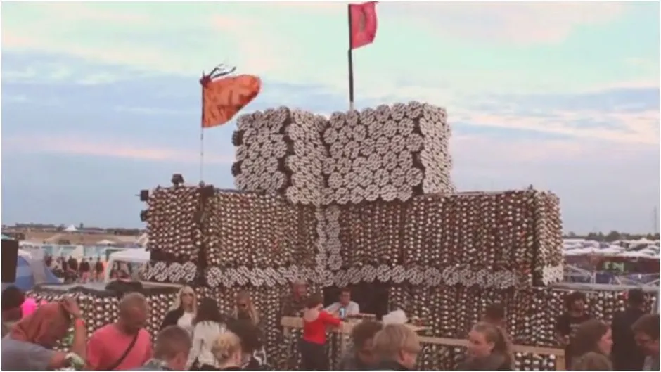 它可能闻起来像兄弟会浴室的地板,吸引的苍蝇比死水牛还多,但对于啤酒爱好者来说,这座宏伟的建筑值得每周七天来祈祷。它是由德国建筑公司 Umschichten 为 罗斯基勒音乐节设计的,这是一个在哥本哈根附近举行的大型音乐和文化节,今年的演出包括 蕾哈娜、克里斯·克里斯托弗森和大家最喜欢的冰岛歌手 Ásgeir Trausti。然而,像真正的教堂一样,它的存在确实归功于教区居民——成千上万的派对爱好者自愿贡献他们的空罐子来建造它的神圣墙壁。