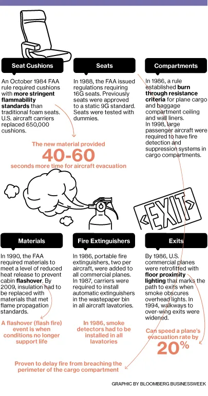 美国联邦航空管理局(FAA)事故调查办公室前主任史蒂夫·华莱士(Steve Wallace)表示:“30年前,飞机失事后乘客本可以幸存,但却死于坠机后的大火。如今,飞机舱内材料已大幅改进,相关法规也进行了修订,以便为乘客争取更多宝贵的逃生时间。”