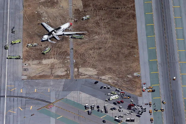 摄影:埃兹拉·肖/盖蒂图片社当人们看到韩亚航空214航班残骸散落在旧金山国际机场28L跑道的惨状时,多数观察者可能认为发生了最糟糕的空难。这架波音777宽体客机在不幸迫降过程中尾部断裂,巨大引擎从机翼脱落,机身顶部裂开的豁口暴露出被烈火吞噬的内舱——飞机在跑道旁停稳后不久便陷入火海。然而这架载有307名乘客和机组人员的巨型客机在7月6日的坠毁事件中仅有两人遇难。由于燃油几乎耗尽、铝制机身强化设计保持了整体结构,以及自1980年代以来实施的数百项安全改进,214航班的迫降最终成为航空史上的生存奇迹而非灾难悲剧。