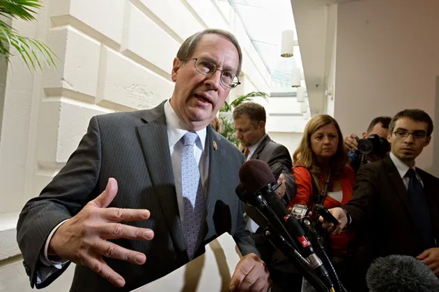 2013年7月10日,众议院司法委员会主席鲍勃·古德拉特在华盛顿就移民问题举行闭门会议后发表讲话摄影:J·斯科特·阿普尔怀特/美联社照片众议院将在移民问题上采取什么行动?这是本周整个华盛顿都在询问的问题,因为议员们刚从7月4日的休会中归来——而共和党在这个问题上的立场似乎四分五裂。