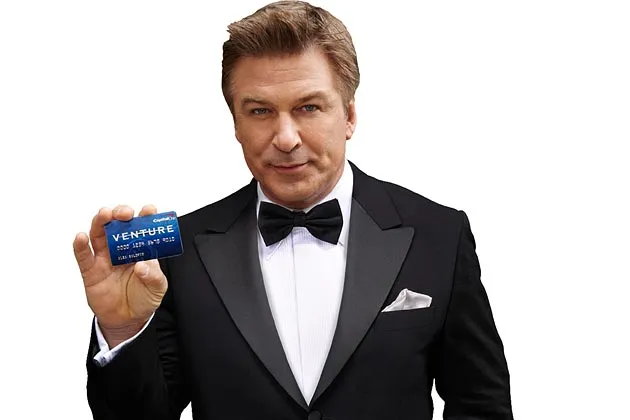 2012年,鲍德温出演全国电视广告推广的Capital One Venture“双倍里程挑战”活动图片由PRNewsFoto/Capital One提供 更新于下午6:18:补充了亚历克·鲍德温从Capital One获得报酬的新细节。