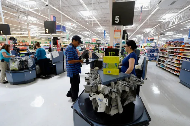 顾客在加利福尼亚州皮科里韦拉的沃尔玛购物。摄影:Kevork Djansezian/Getty Images沃尔玛百货希望在大城市开设更多分店,但一些主要都市区并不那么欢迎。纽约就是一个例子,现在华盛顿特区也加入了这一行列,当地政府刚刚投票通过了一项生活工资法案,该法案将把大型零售商(即沃尔玛)员工的最低工资提高到12.50美元。