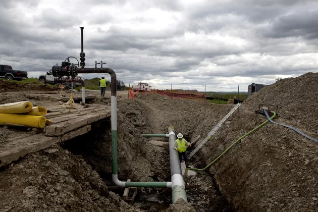 2012年5月宾夕法尼亚州布拉德福德县的水力压裂现场摄影:凯蒂·奥尔林斯基/盖蒂图片社水力压裂法这一具有生态争议的技术推动美国石油产量达到21年来新高,但其本质仍是代价高昂的"盲猜游戏"。钻探公司通常将化学物质、砂石和水的混合物近乎盲目地注入含油气岩层,通过制造裂缝获取渗出的燃料。