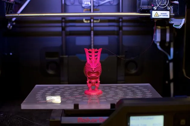在纽约布鲁克林的新工厂里,一台Makerbot 3D打印机正在制作一个小雕像。摄影:Victor J. Blue/彭博社若询问大型制造商关于3D制造的看法,他们会说这项技术必将大有可为,但目前仍坚持使其壮大的根本:标准化、流程优化和大规模生产。亨利·福特若在世定会倍感亲切。