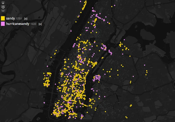 这是去年十月和十一月的曼哈顿,展示了标记为“桑迪”和“飓风桑迪”的照片: