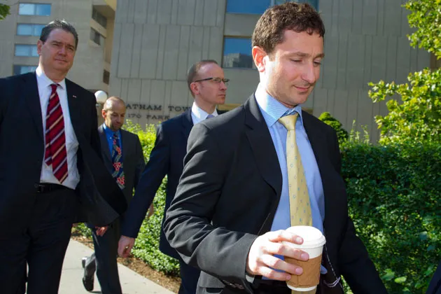 法布里斯·图雷,前高盛副总裁,右侧,在纽约联邦法院走向第二天的审判程序照片由金·李/彭博社提供陪审员,一位穿着奶油色夹克的中年女性,朝首席辩护律师的方向皱起了眉头。另一位陪审员摘下眼镜,揉了揉鼻梁。第三位陪审员则在座位上萎缩,下巴稳稳地向胸部倾斜,显然在长时间内打瞌睡。