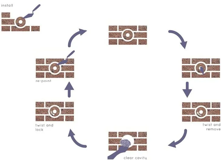 安装的鸟砖每两到五年需要维护一次;其表面的塞子可以拧开,让物业拥有者清理旧巢、入侵的老鼠和其他不需要的东西。否则,它就成为城市建筑的一部分,同时也惠及鸟类。正如Dunkerton 在他的项目页面上写道:“砖的材料特性——低热和湿气移动以及高耐久性——使得这个空腔非常适合筑巢,而不会影响建筑的结构,同时在视觉上也不显眼。”