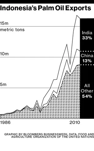 棕榈油及其衍生品在全球成千上万的产品中都有出现,从甜甜圈到肥皂,从口红到生物柴油。自1990年以来,全球棕榈油消费量增长了五倍。在亚洲,棕榈油广泛用于食用油和面条,推动了一个440亿美元的行业的增长。今年2月,作为全球最大棕榈油生产国的印度尼西亚的出口达到了五年来的最高点。
