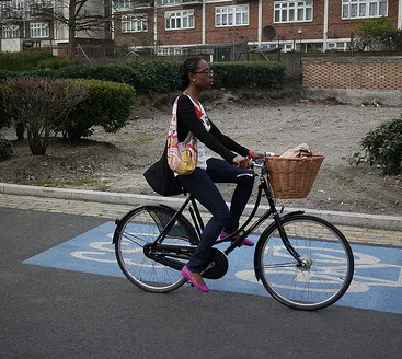 一个问题是,伦敦的大部分骑行基础设施不过是半心半意的绿色洗涤。2008年推出的城市十二条宏伟命名的自行车“超级高速公路”使骑行的可见度达到了前所未有的高度,并在某些方面取得了一些成功。虽然它们比名字所暗示的要窄,但它们将自行车吸引到一条单一的路线,导致早晚的骑行人群因此获得了一定的可见度和人数安全感。它们还为伦敦的 自行车共享计划提供了一个清晰的网络,该计划在第一年就完成了六百万次出行。然而,除了让骑行者更为显眼外,这些超级高速公路并没有提供任何具体的保护,并被夸张地描述为 “每英里花费200万到400万英镑的蓝色油漆。”正如伦敦骑行运动的传播经理迈克·卡文特所评论的,网络的道路标记提供了一种安全的错觉: