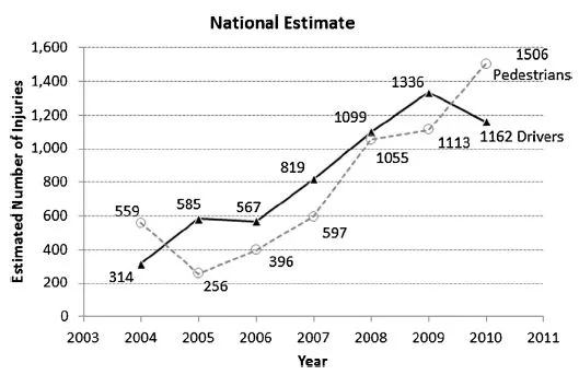 Shutterstock在所有无意义的方式中,因走路时使用手机而受伤,恐怕是最靠前的。然而,根据即将在 下个月 发布的研究,至少有1,500名美国人在2010年讲述了这个尴尬的故事,事故分析与预防期刊的数据显示,自2005年以来,这一数字稳步上升: