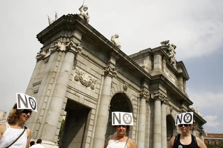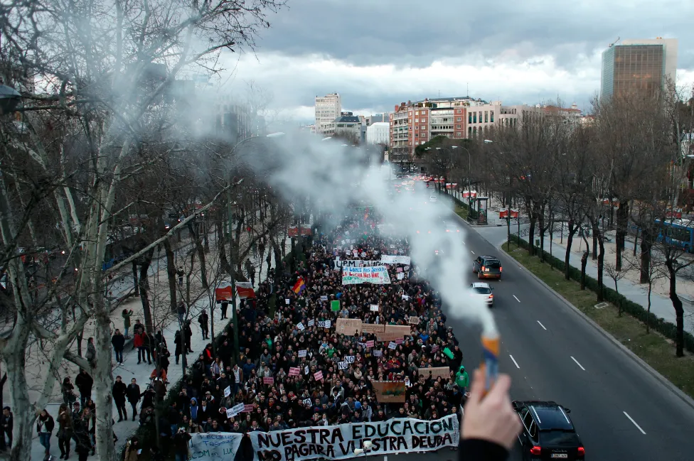 大学生在马德里市中心参加反对因政府紧缩措施而削减教育经费的示威。胡安·梅迪纳/路透社他们将医院交给私人公司,并将学费提高了一倍以上。
