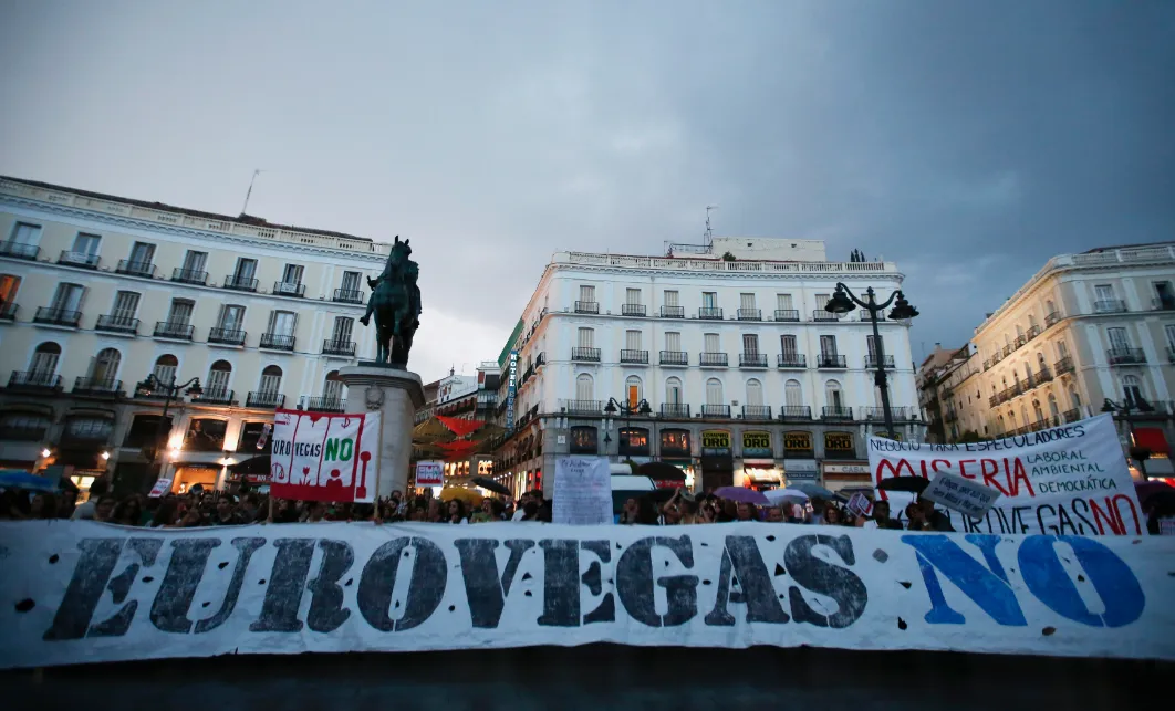 示威者抗议拉斯维加斯金沙集团在马德里市中心计划建设的赌博综合体。安德烈亚·科马斯/路透社他们正在建设欧洲有史以来最大的赌场