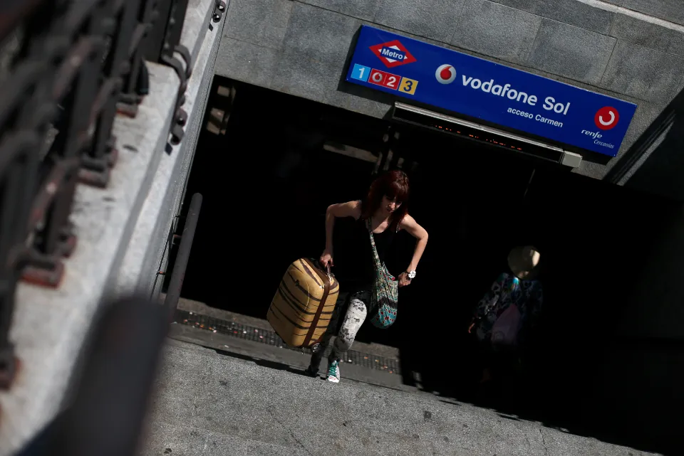 一名女性在马德里沃达丰-索尔地铁站走上楼梯。胡安·梅迪纳/路透社他们让一家手机公司重新命名他们的地铁网络