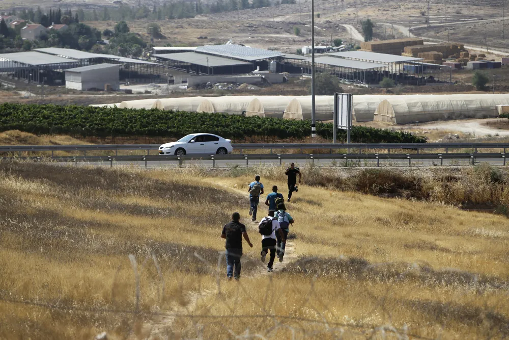 来自约旦河西岸的巴勒斯坦工人在2013年6月22日非法越过以色列的隔离墙后,在南部城市贝尔谢巴附近奔跑。**(阿马尔·阿瓦德/路透社)