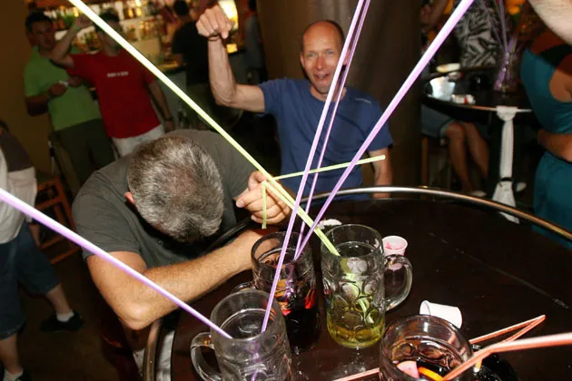 德国游客在马略卡岛阿雷纳尔海滩的一家酒吧摄影:Jaime Reina/法新社通过Getty Images现在是西班牙马略卡岛度假胜地帕尔马的旺季,和往常一样,海滩上挤满了吵闹的年轻德国人,他们从公共桶中啜饮桑格利亚酒,在慕尼黑啤酒节风格的帐篷里痛痛快快地喝啤酒。