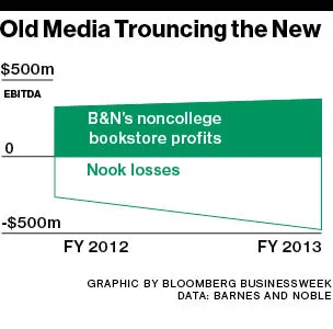 巴恩斯与诺布尔在六周后公布了2013财年的财务结果。整体销售额下降了4.1%,降至68亿美元,亏损了1.55亿美元。传统书店业务的利润为3.74亿美元,比上一个财年增长了16%,尽管销售额下降了5.9%,降至46亿美元。当然,Nook业务的运营亏损为4.75亿美元,销售额为7.762亿美元。