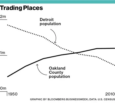 Patterson承认底特律的破产可能会影响奥克兰的宝贵信用评级。当评级机构的代表下个月来访时,他将试图说服他们,奥克兰县是“一个独立的经济体”,安全地与底特律的崩溃隔离。无论这是否真实,奥克兰县的经济并不像以前那样充满活力。尽管Patterson采取了经济举措,但人口增长已经放缓,2009年仅在底特律通用汽车和克莱斯勒破产后,县内失去了60,000个工作岗位。根据美国人口普查局的数据,过去十年中,中位家庭收入保持平稳,而生活在贫困中的居民比例翻了一番。