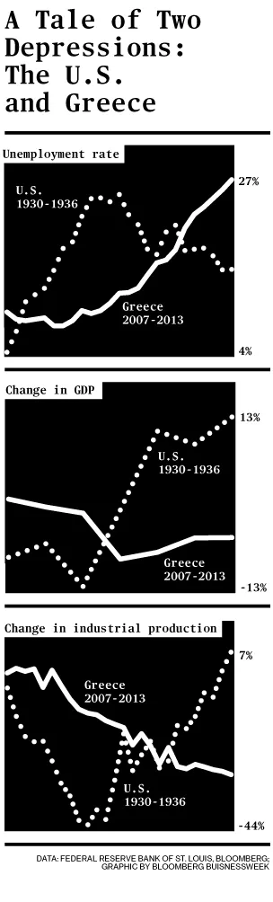 希腊的就业危机是一个更广泛紧急情况的窗口,这威胁着欧洲的未来。根据欧洲委员会的数据,整个大陆的长期衰退对年轻人产生了不成比例的影响,近四分之一的25岁以下年轻人失业。(在美国,青年失业率为16.2%。)这低估了意大利和葡萄牙的情况严重性,那里青年失业率已飙升至35%以上;西班牙的失业率为53.2%,在希腊的55.3%之后,位居第二。欧盟领导人已宣布一项倡议,旨在确保所有年轻人在失业后四个月内获得工作、学徒或更多教育。各国政府承诺在两年内投入80亿欧元,以应对欧洲受影响最严重国家的失业问题,欧洲投资银行则提供180亿欧元的贷款,以鼓励中小企业招聘。