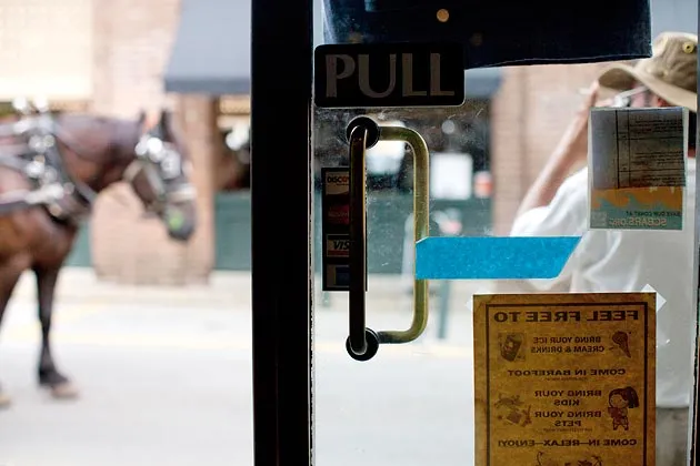 19世纪在查尔斯顿半岛上建造房屋的南卡罗来纳州人没有预料到会有多湿。科学家们预计到本世纪末,海平面将上升8英寸到6英尺,这使得低洼沿海企业面临风险。为了向她的顾客明确气候变化的威胁,布里奇斯上周加入了一项运动,标记如果最糟糕的情景成真,2100年的高潮将会在哪里。她门把手附近的一条天蓝色胶带标记了这个位置。“我现在站的位置,水会淹到我的胸口,”她说。